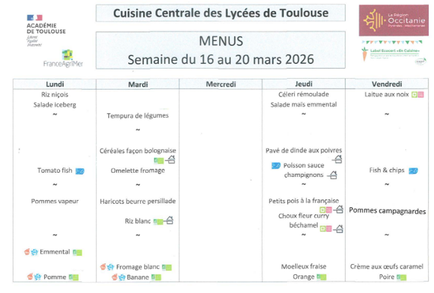 Menus scolaires