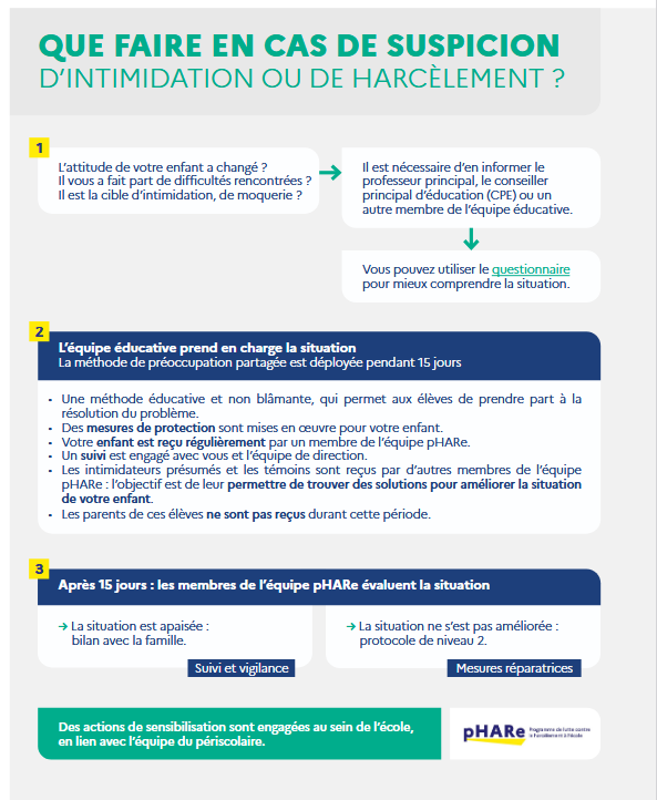 La méthode de Préoccupation partagée utilisée au collège est résumée ci-après.
